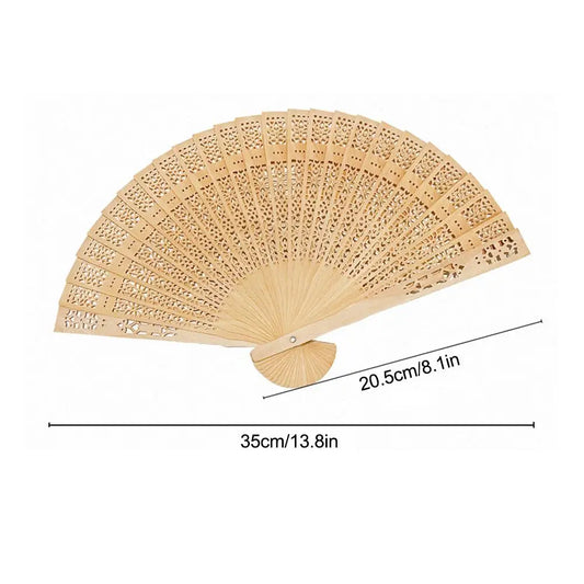 Folding Hand Fans Engraved Elegant Wood With Bags Tassels