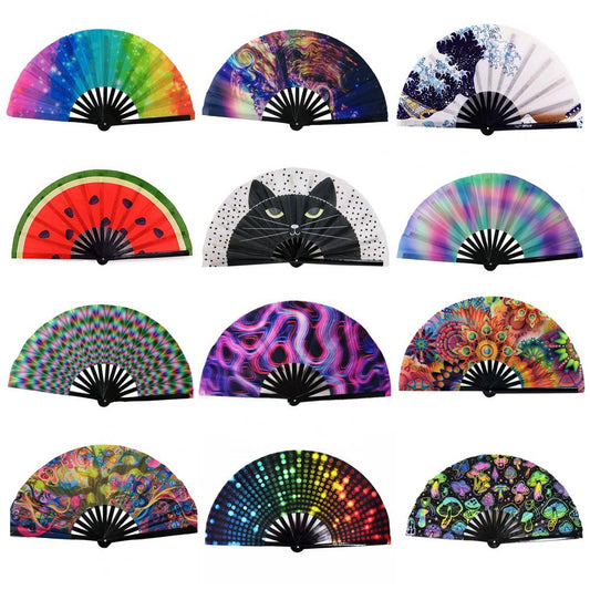 Colorful Rave Vibrant Bamboo Hand Fans f